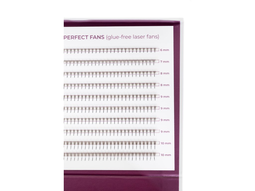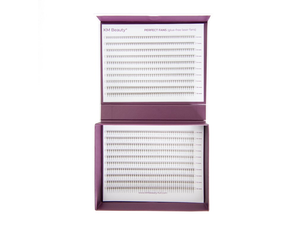 KM Beauty Perfect Fans jsou narrow hotové vějířky (premade fans) v praktické knize, vytvořené moderní glue-free laserovou technologií. Každý vějířek má na spodní části mikroskopické drážky, které dramaticky zvyšují přilnavost k přírodní řase a posouvají Vaše sety řas na profesionálně vyšší úroveň!