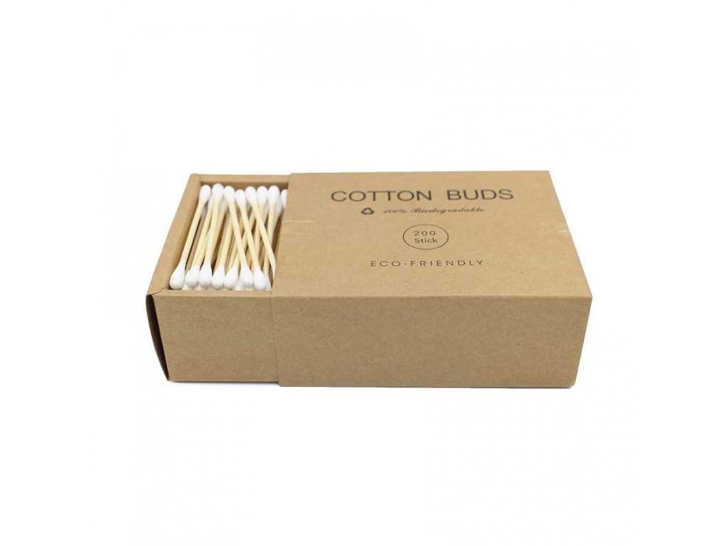 100% rozložitelné vatové tyčinky jsou vyrobeny ze 100% bavlny a bambusu.